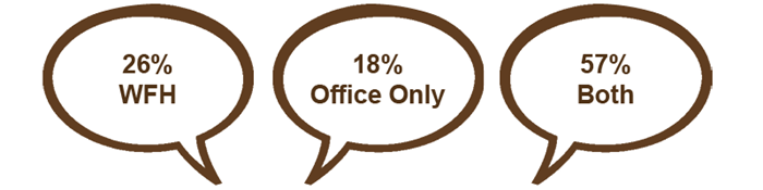 Now, according to a recent Servcorp LinkedIn poll, around 26% of 230 respondents preferred to only work from home while 18% stated they’d prefer to work in the office. A huge 57% said they’d like a combination of both.
